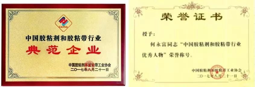 年会期间,中国石油和化学工业联合会副会长傅向升、中国胶粘剂和胶粘带工业协会理事长张振友、中国胶粘剂和胶粘带工业协会原秘书长龚辈凡、中国胶粘剂和胶粘带协会副理事长兼秘书长杨栩到会并致辞。会议还表彰了行业发展的30年期间为行业发展做出突出贡献的企业和个人,杭州之江有机硅化工有限公司和杭州之江董事长何永富先生荣获“中国胶粘剂和胶粘带行业典范企业”和“中国胶粘剂和胶粘带行业优秀人物”,是对于杭州之江在胶粘剂及密封胶行业21年默默贡献的认可。