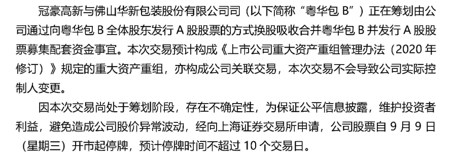 冠豪高新:关于筹划重大资产重组停牌进展公告