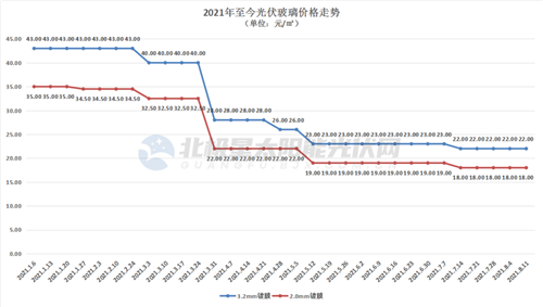 玻璃涨价主要以小单成交为主。前不久,唐山金信新能源与唐山金信太阳能玻璃有限公司通告,自2021年9月1日起将厚度为3.2mm玻璃原片每平米上调4元;将厚度为2.0mm玻璃原片每平米上调3元。福建台玻及拓日新能源公告,将3.2mm镀膜产品价格上调0.5-1元/平米至23元/平方米。