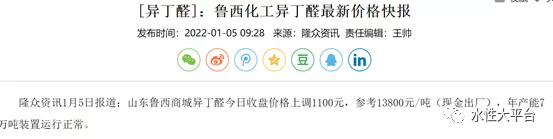 鲁西化工:异丁醛的价格从去年12月31日的9700元/吨上涨至12700元/吨,而且一日一调价。