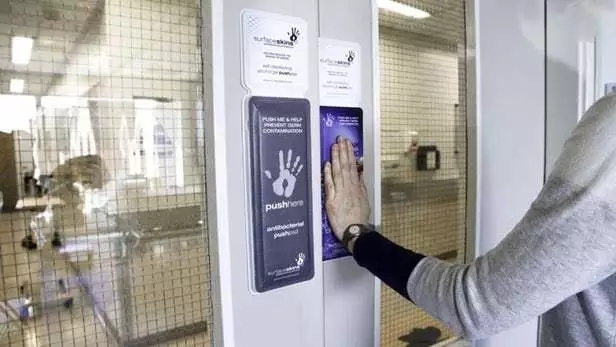 到任何医院都可以看到大量的洗手液。不幸的是,并不是每个人都会使用它们,并且他们携带的细菌可以在诸如门把手的常见表面迅速传播。考虑到这一点,利兹大学研究人员创办的一家公司推出了一种杀菌门垫。被称为Surfaceskins的低价织物覆盖了大部分门上现有的铝推板。