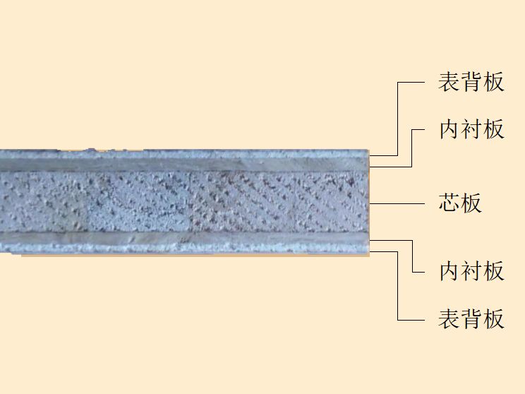 从实拍与示意图中可以看出,实木科定板共有五层,分别为两张表背板、两张内衬板以及中间的芯板。