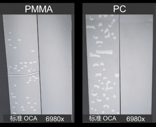 据了解,德莎在其专业的实验室环境下对于6980x系列产品进行了非常严格的测试,经长时间全面系统的测试后得出了以下结论:6980x系列产品都具备很强的粘合力,能够有效地抑制贴合过程中塑胶材质释放的水汽,还能够填补板材和油墨段差,是符合车规的车载显示贴合方案。