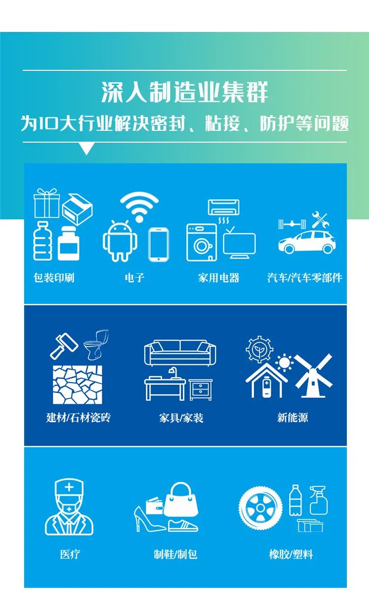 随着“内循环”的不断深化,新能源、新基建、5G、汽车、航天航空、软包装等热门行业将迅猛发展,对高性能胶粘/密封产品的市场需求及应用领域将不断扩大。