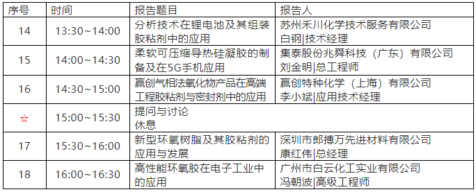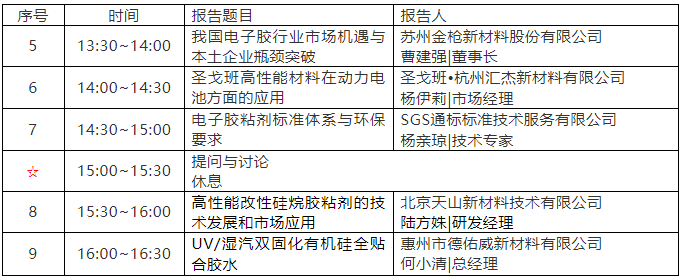 2、本届会议将设“锂电池及其组装胶粘剂、绿色包装胶粘剂、硅酮及改性硅烷胶粘剂、高端环氧树脂胶粘剂”四个专题,主要包含以下内容: