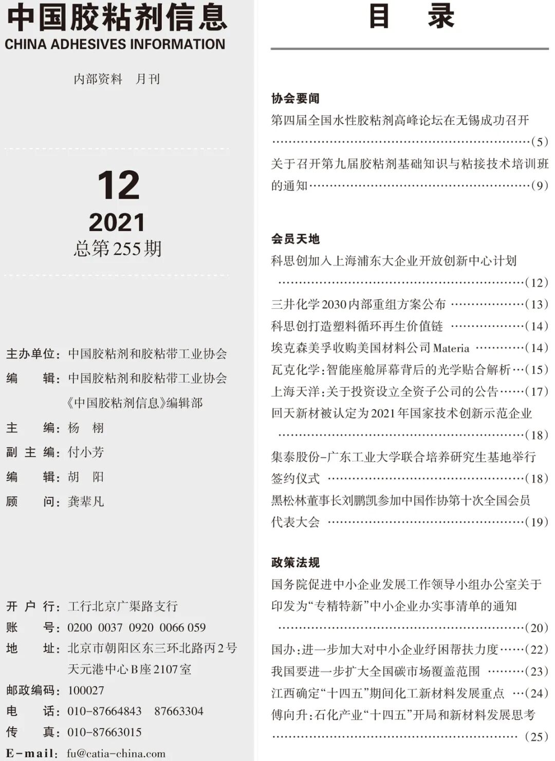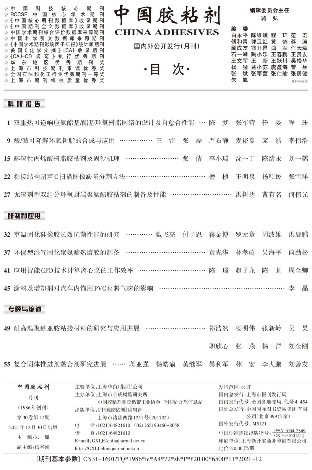 权威学术期刊,是胶粘剂行业交流技术、展示科技成果的主要阵地,也是科研人员获取研究信息的重要渠道。