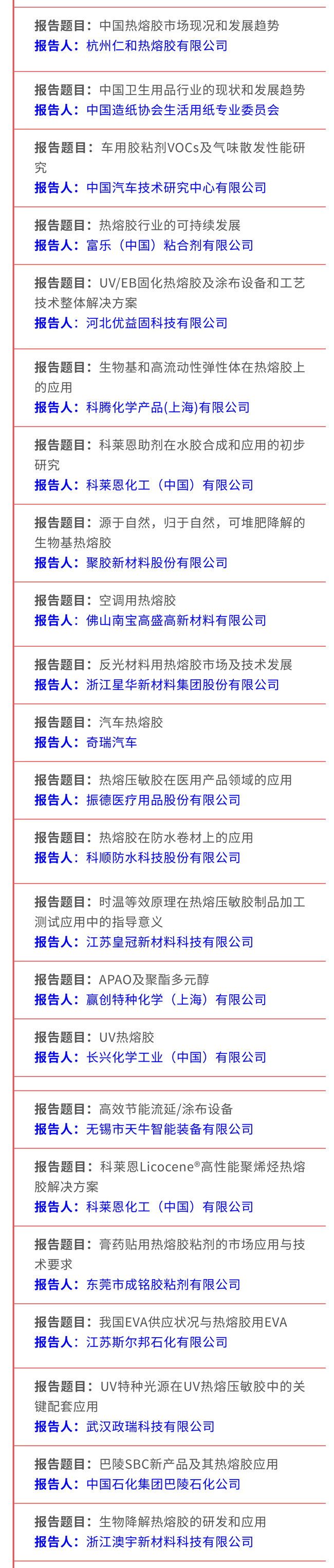4、高峰论坛的同期,将举办热熔胶及原料展示会(3月21-22日,两天)。