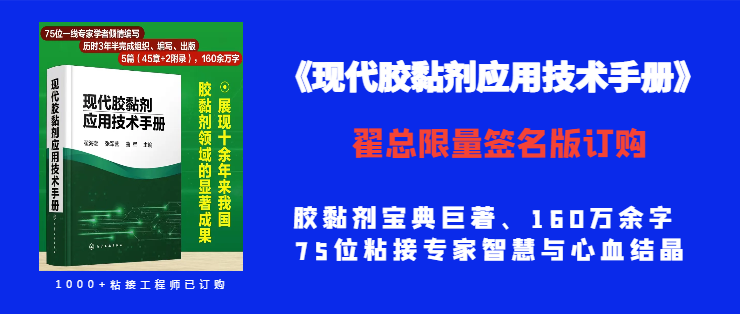 该手册同通过粘接资讯平台渠道已销售超过1000本,当前仅剩余少量由第一主编翟海潮先生亲笔签名的书籍,由化学工业出版社授权粘接资讯在全国销售