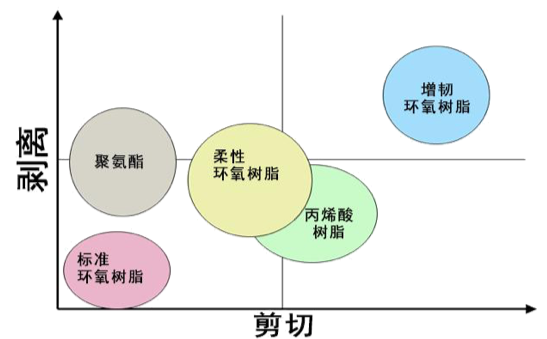 图1.通过对比剥离和剪切性能得出的双组分结构型胶粘剂之间的相对关系