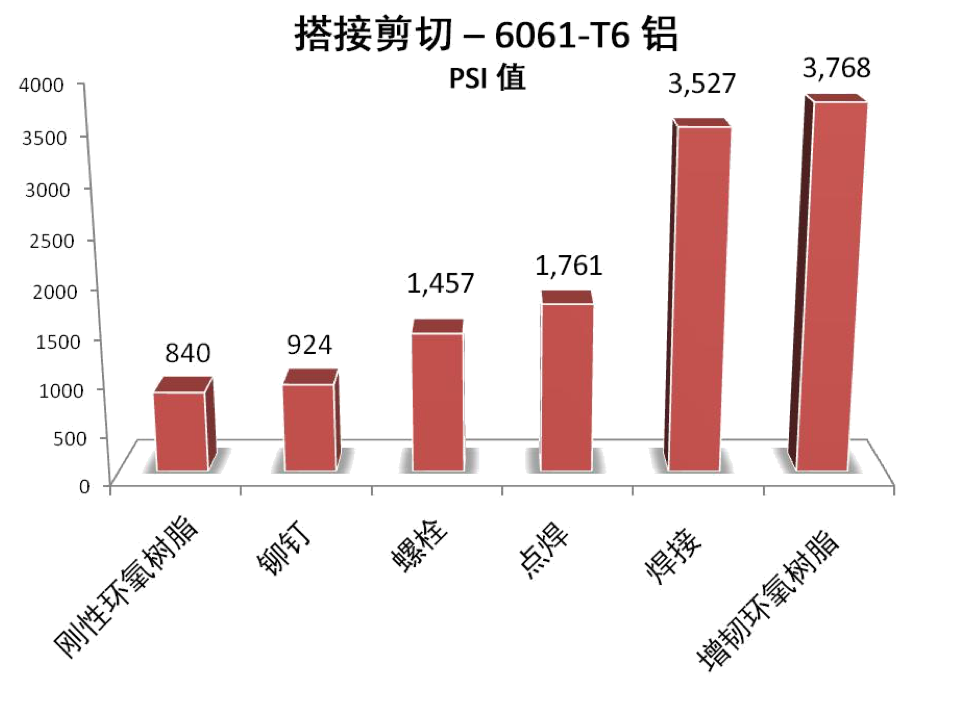 图3.增韧环氧树脂可以达到或超过传统连接方法的剪切失效力度