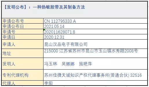 摘要:本发明公开了一种热敏胶带,包括金属基材,所述金属基材上涂覆有热敏胶,所述热敏胶包括以下重量组分:乙酸乙酯60~120份,烷基偶联剂0.5~1.5份,异氰酸酯类架桥剂1~3份;去离子水0.1~2份,纳米碳黑1~4份,纳米石墨1~4份,聚酯树脂30~200份,本热敏胶在15℃~30℃常温下剥离力小于80g/inch(对测试钢板),65度下保温30分钟实现产品粘合,冷却至室温剥离力大于600g/inch(对测试钢板),实现永久固定,可广泛应用于不耐高温的电子元器件的封装固定。